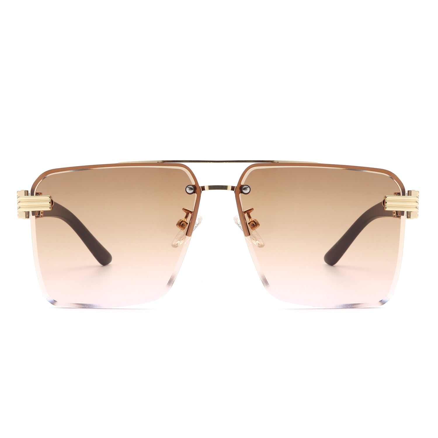 Elysian - Retro Square Rimless Brow-Bar Tinted Fashion Sunglasses