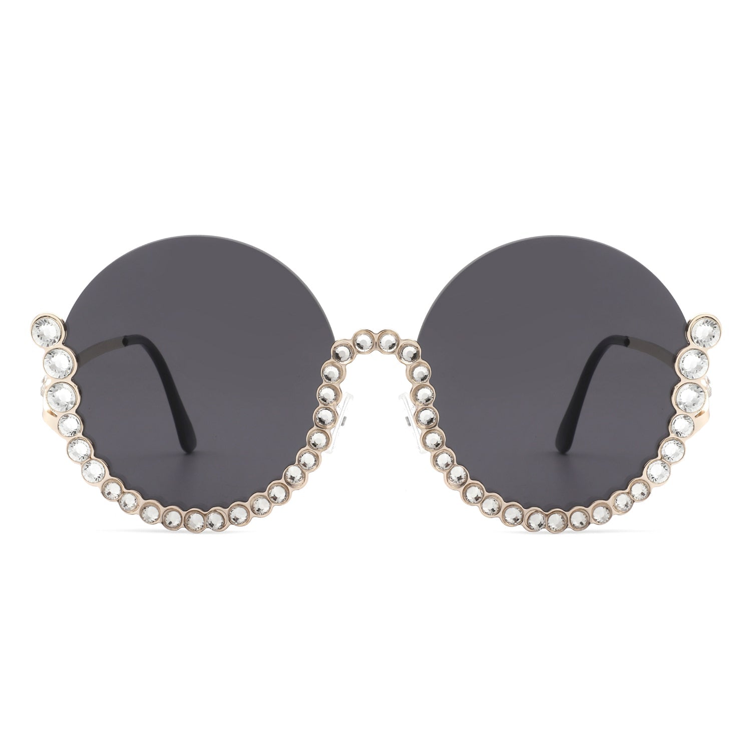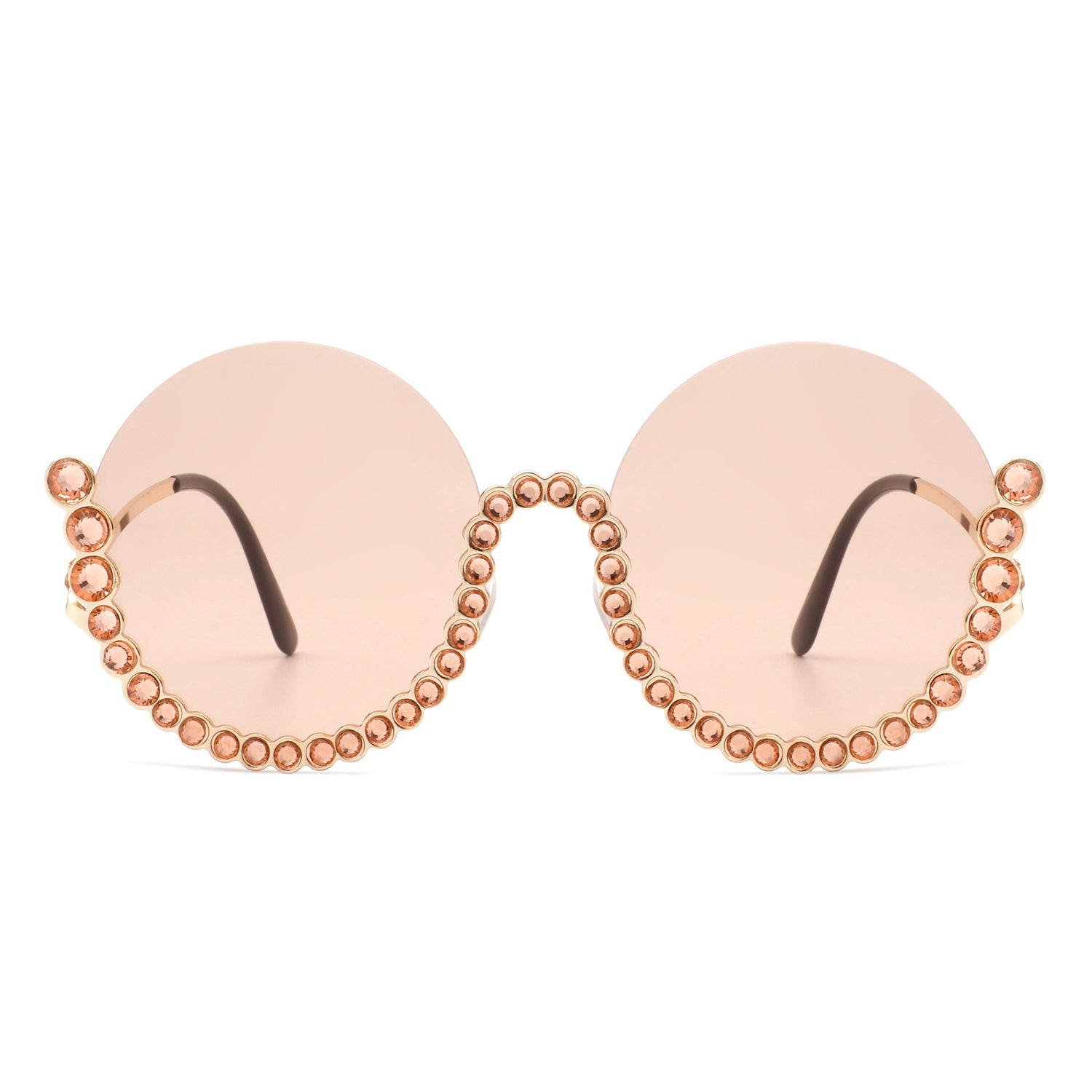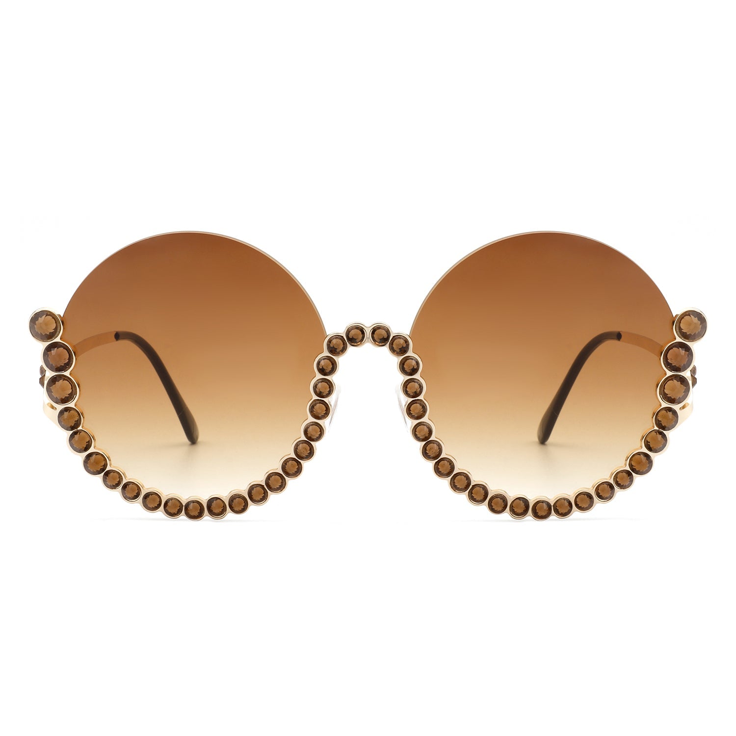 Gloriana - Women Circle Half Frame Oversize Rhinestone Fashion Round Sunglasses