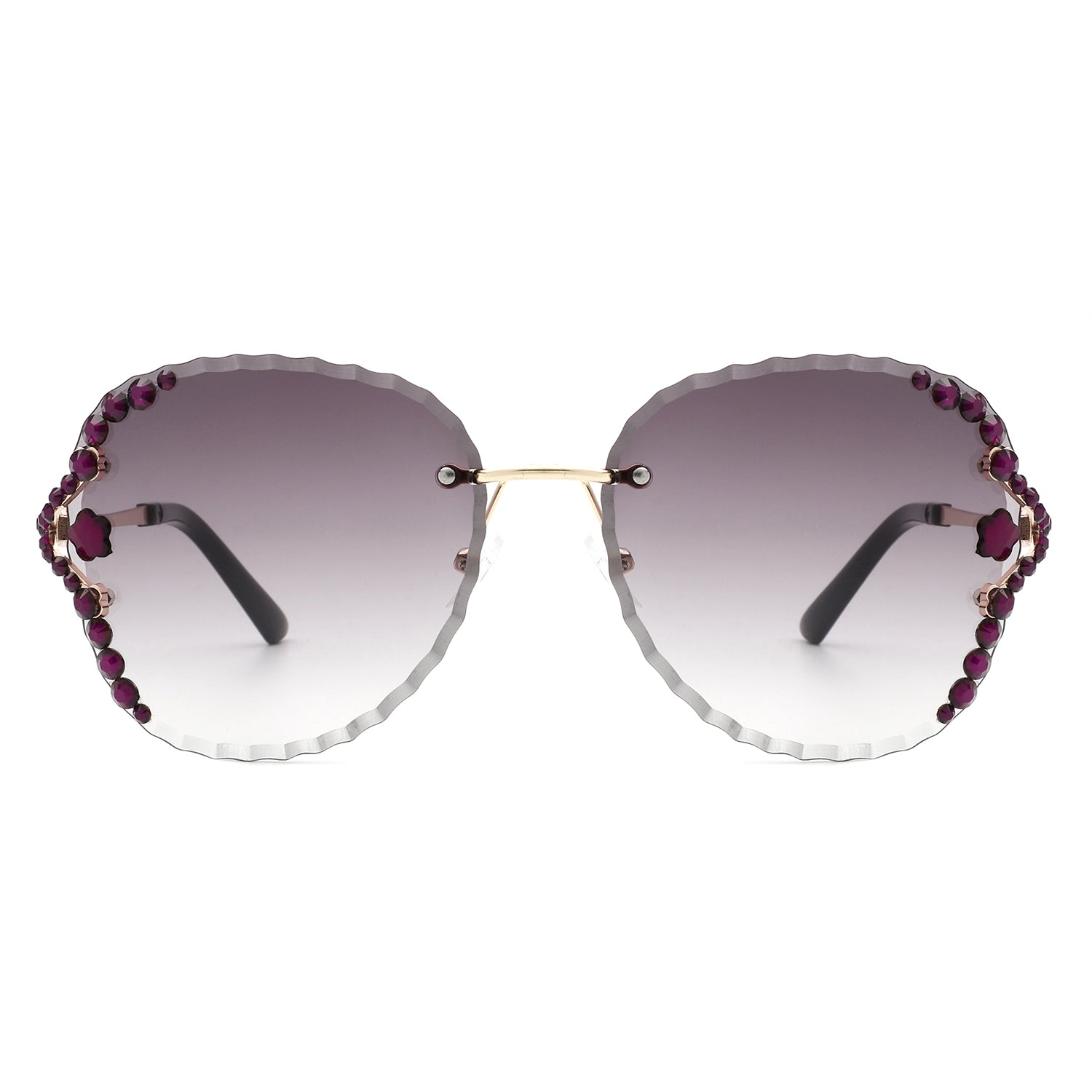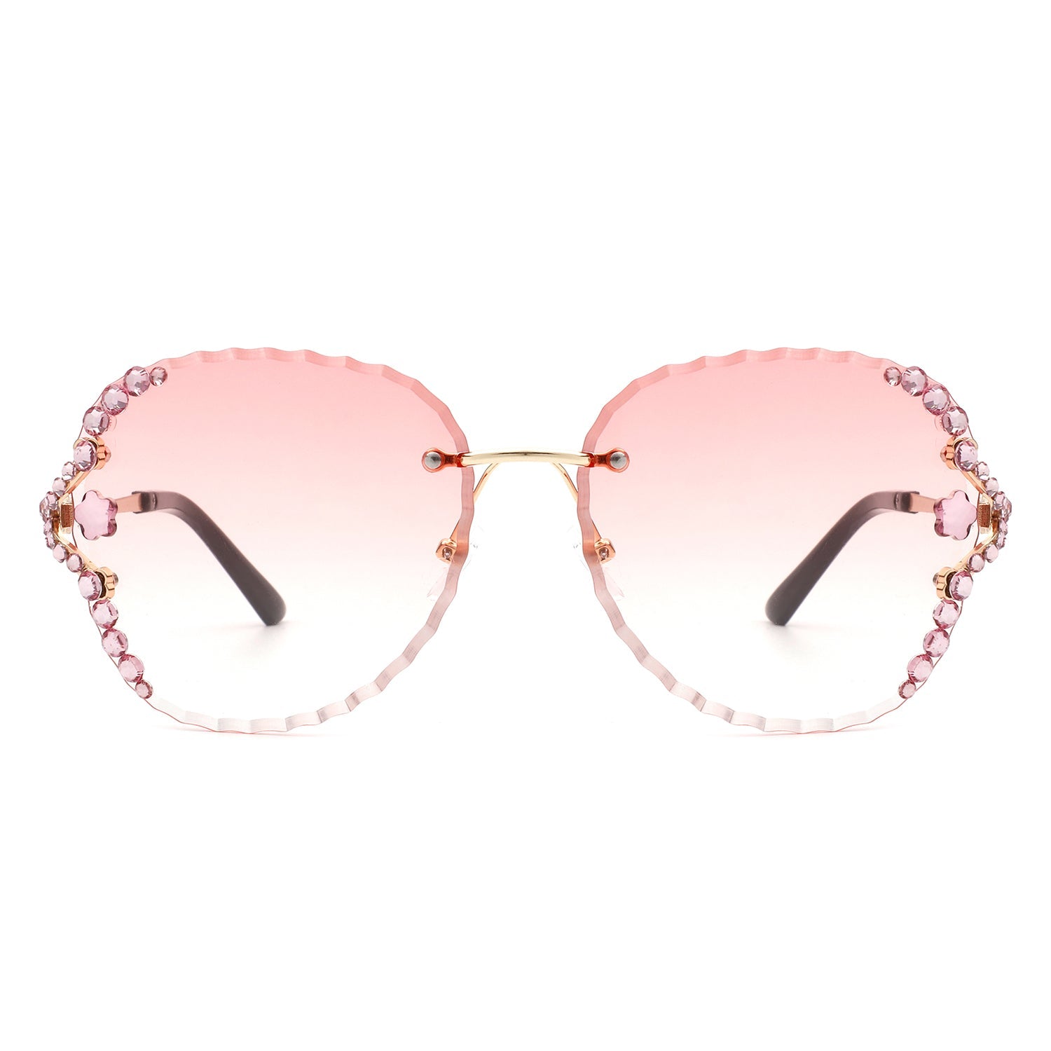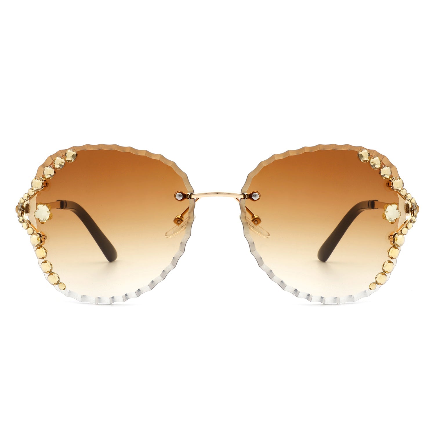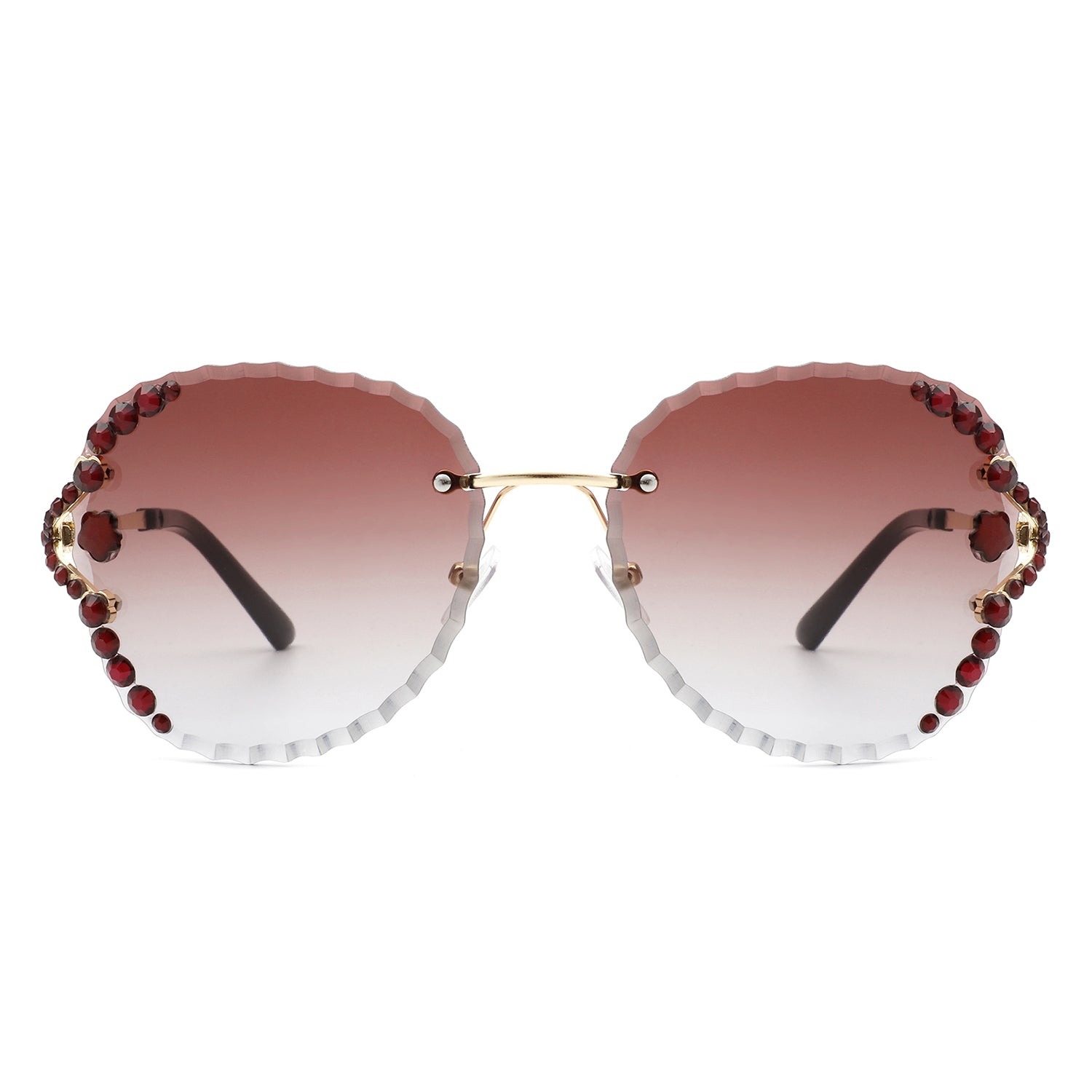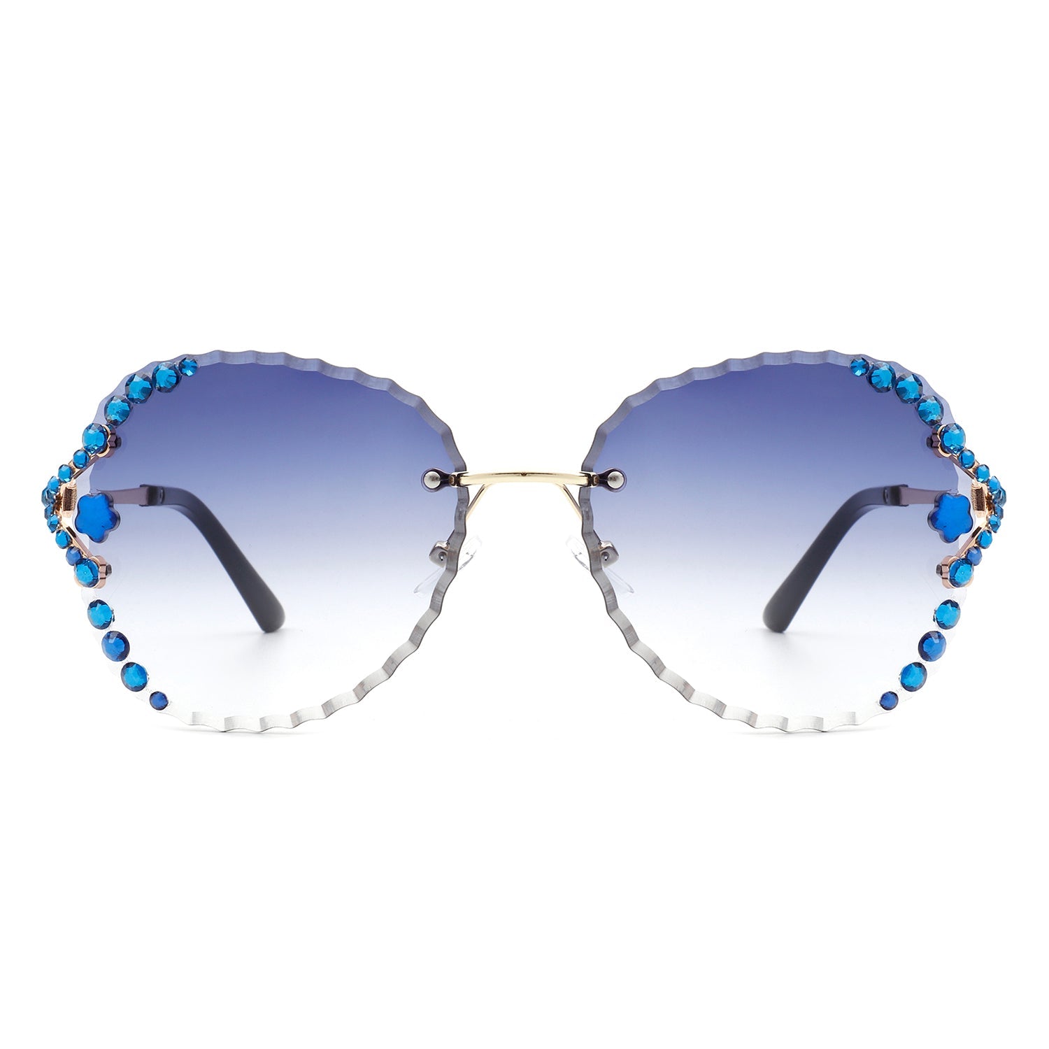 Lightblu - Women Fashion Oversize Rimless Round Rhinestone Design Sunglasses