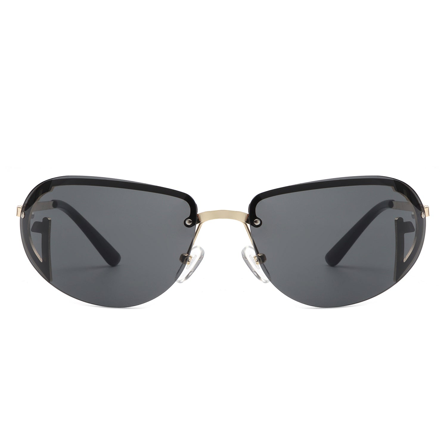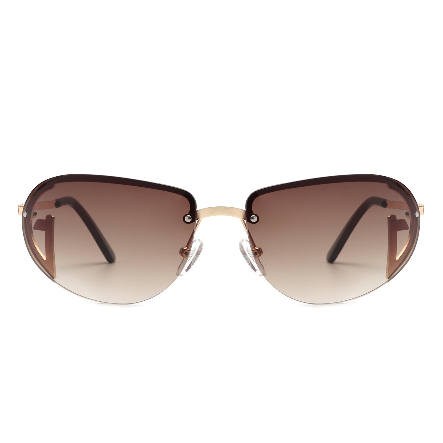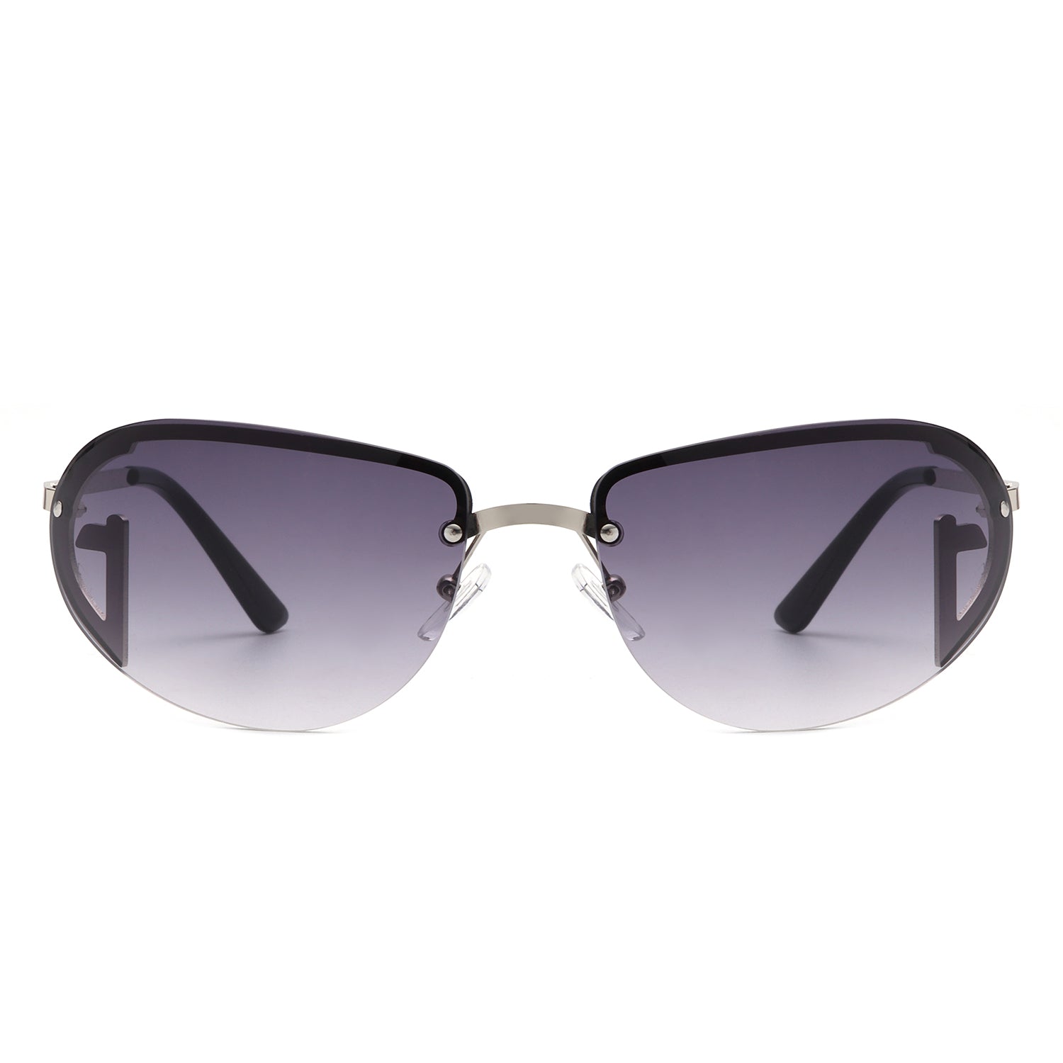 Oceandew - Retro Rimless Oval Tinted Round Sunglasses