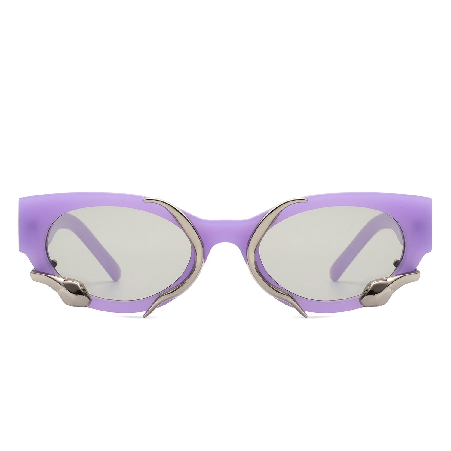 𝐅𝐀𝐒𝐇𝐈𝐎𝐍 𝐒𝐔𝐍𝐆𝐋𝐀𝐒𝐒𝐄𝐒: These round snake sunglasses for women arrive with a smooth curved front and bold temples. With a shape resembling a cat eye, the front is adorned with a snake wrapping around the lenses.